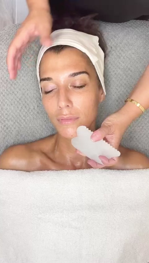 Elevate your skincare ritual with our White Jade GuaSha tool. This pure white jade luxurious tool is designed to enhance your beauty routine by promoting lymphatic drainage, reducing puffiness and stimulating circulation. Experience the cooling and soothing benefits as you sculpt and tone your face, leaving your skin radiant and revitalized. Perfect for all skin types...pairs perfectly with Gianna's Cleansing Oil for slip.