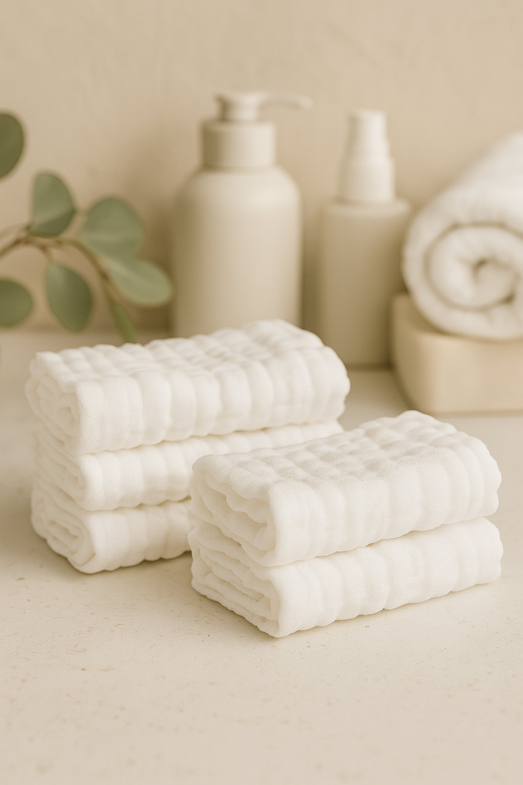 Elevate your skincare routine with our Muslin Facecloth Set—designed for gentle yet effective cleansing and exfoliation.